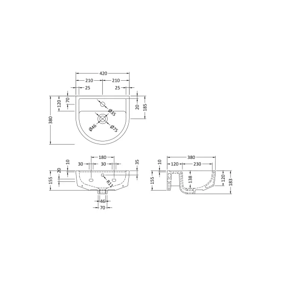 nuie Provost 420mm Small Basin 1 Tap Hole