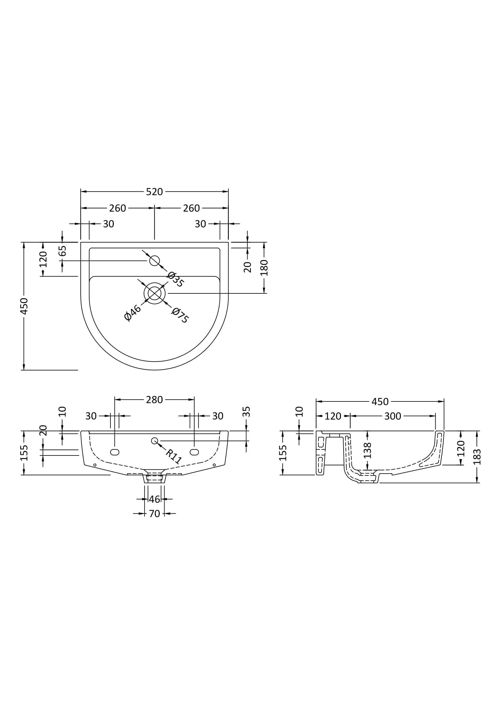 nuie Provost Medium 520mm Basin 1 Tap Hole