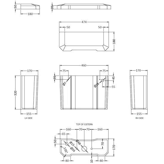Old London Richmond Toilet Cistern B Ceramic Lever Fittings