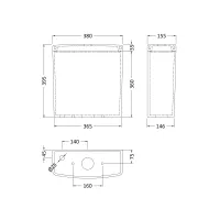 L Shaped 1 Tap Hole Polymarble Basin 503mm