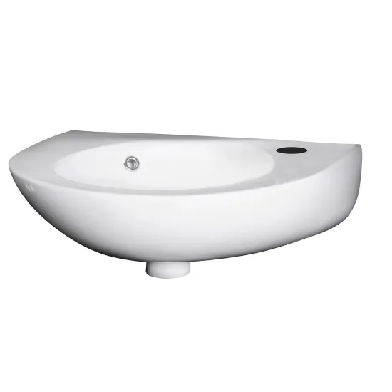Modern curves creating a clean neat design. Ideal for smaller bathrooms & cloakrooms. Suitable for mono basin mixers. Manufactured from high quality vitreous china.