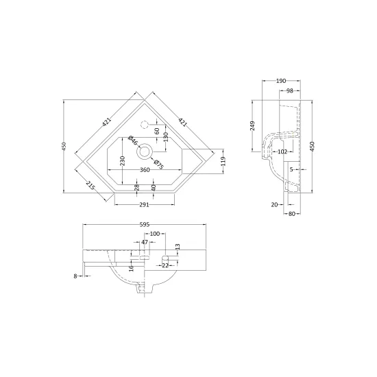 Old London Richmond Corner Basin 421 x 421 x 595mm