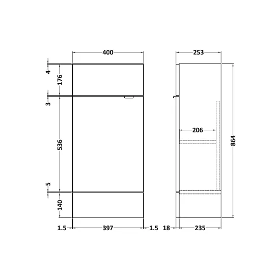 Fusion Fitted Floor Standing 1 Door Vanity Unit Compact 400mm