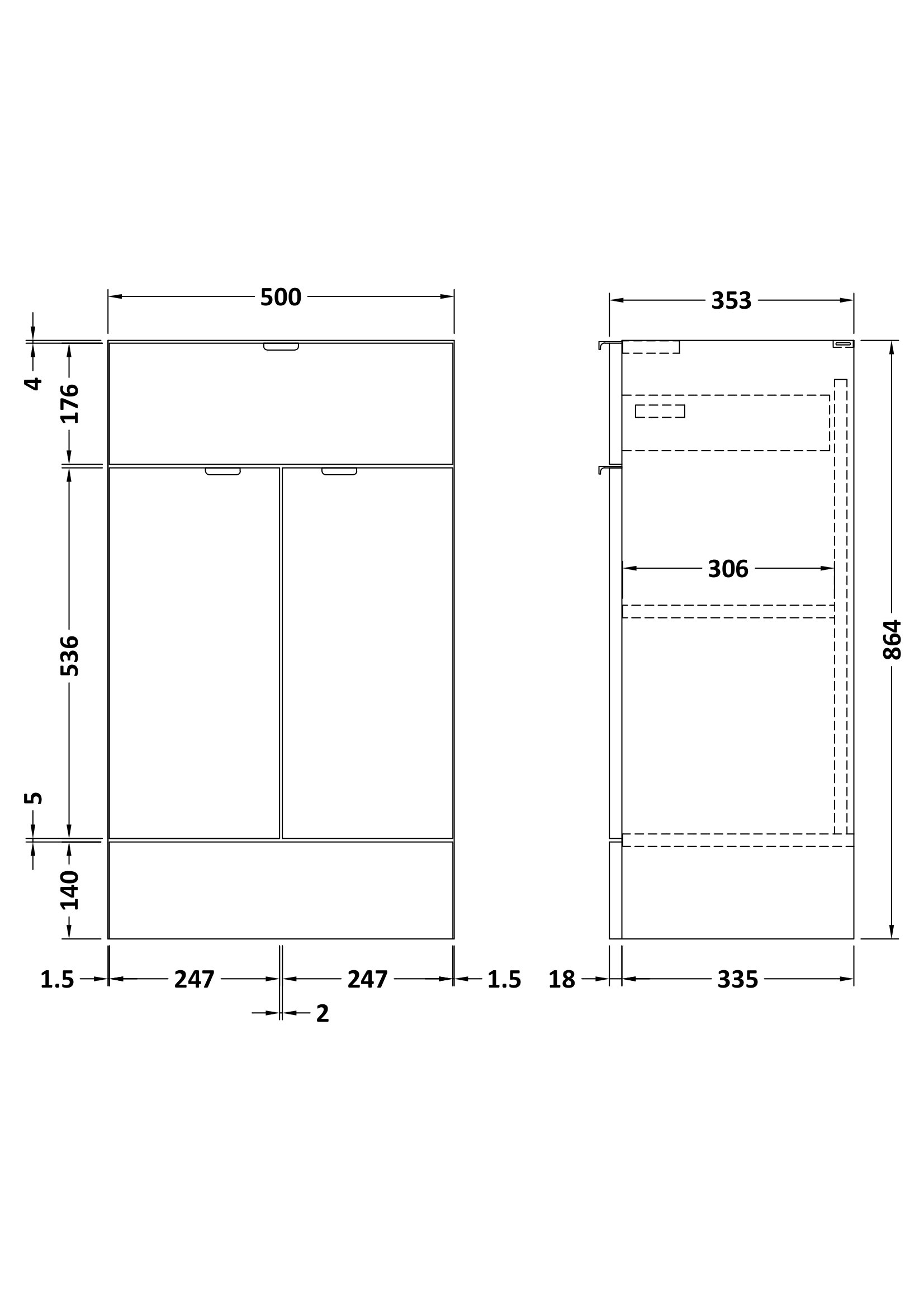 Fusion Fitted Floor Standing 2 Door 1 Drawer Lined Unit 500mm