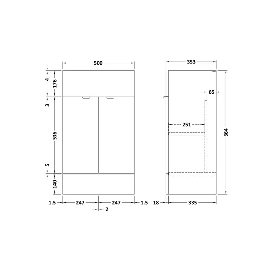 Fusion Fitted Floor Standing 2 Door Vanity Unit 500mm