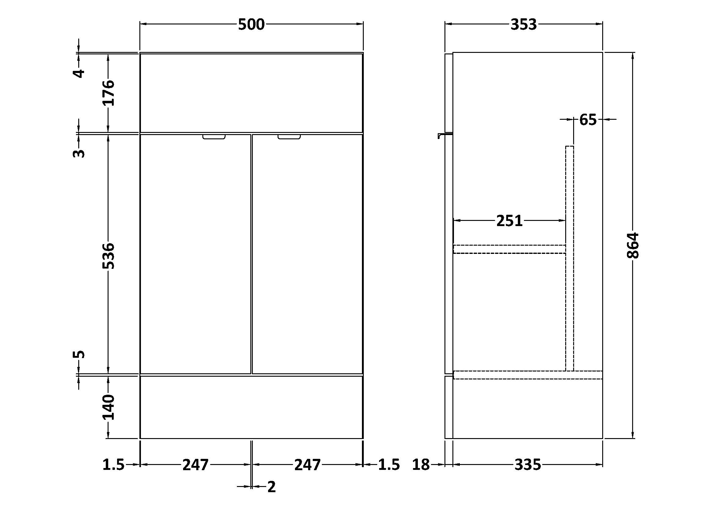 Fusion Fitted Floor Standing 2 Door Vanity Unit 500mm