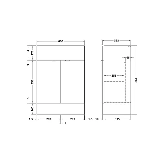 Fusion Fitted Floor Standing 2 Door Vanity Unit 600mm