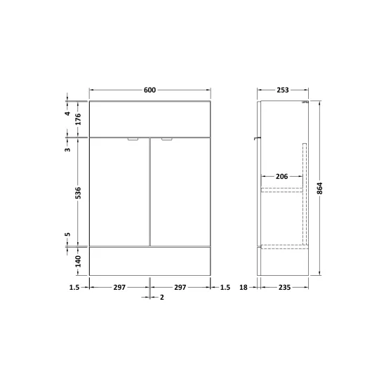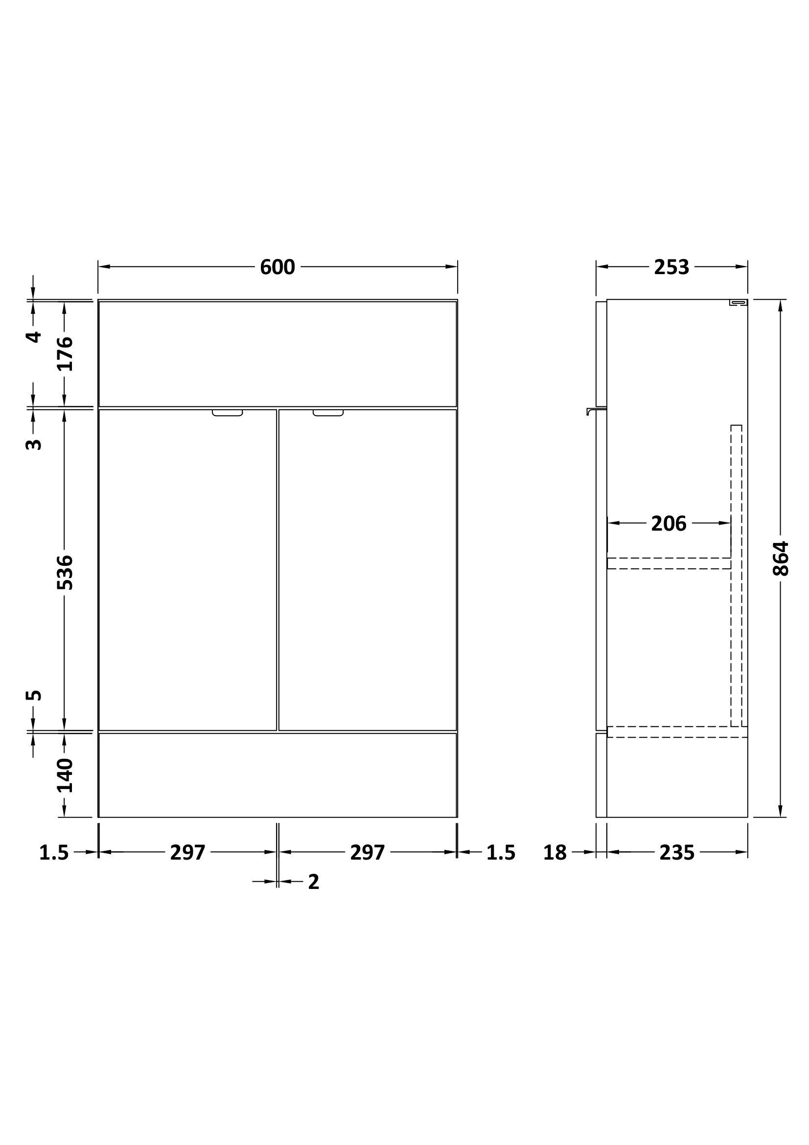 Fusion Fitted Floor Standing 2 Door Vanity Unit Compact 600mm