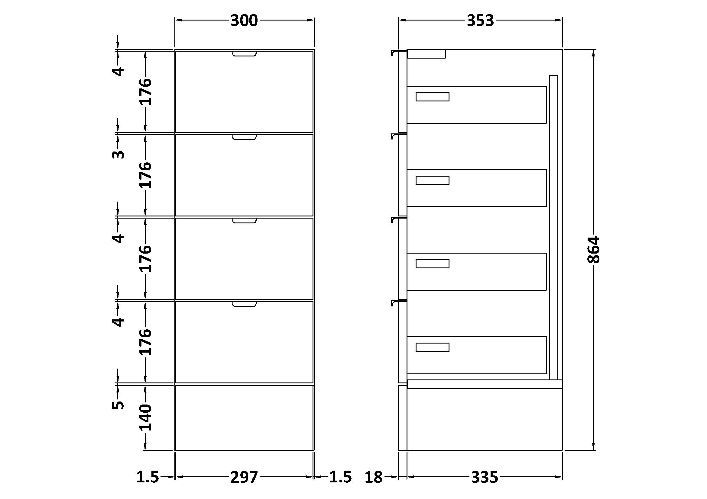 Fusion Fitted Floor Standing 4 Drawer Lined Unit 300mm