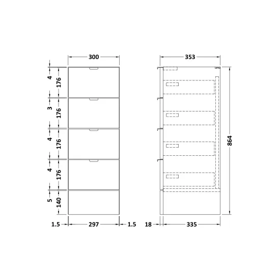 Hudson Reed Fusion Fitted Floor Standing 4 Drawer Lined Unit 300mm - Gloss Grey