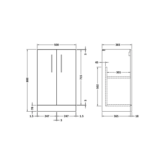 nuie Arno 500mm Floor Standing 2-Door Unit - Gloss White