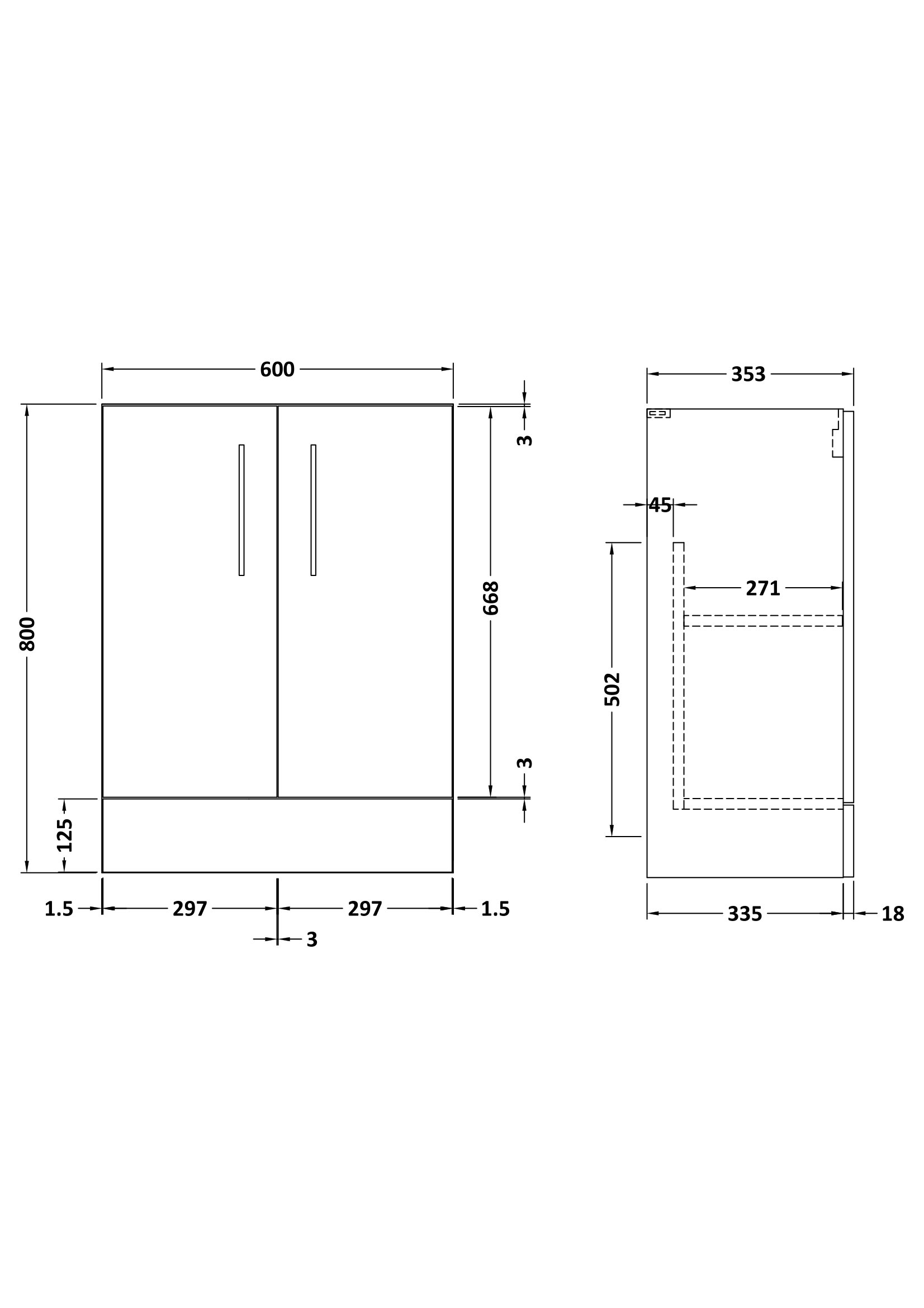 Nuie Arno 600 Floor Standing 2-Door Unit - Gloss White