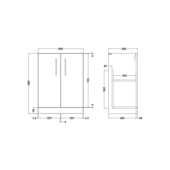 nuie Arno 600mm Floor Standing 2-Door Unit - Gloss White