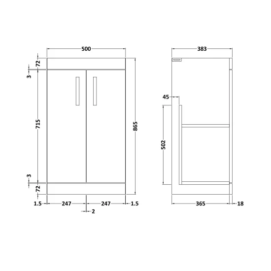 Athena Floor Standing 2 Door Vanity Unit 500mm