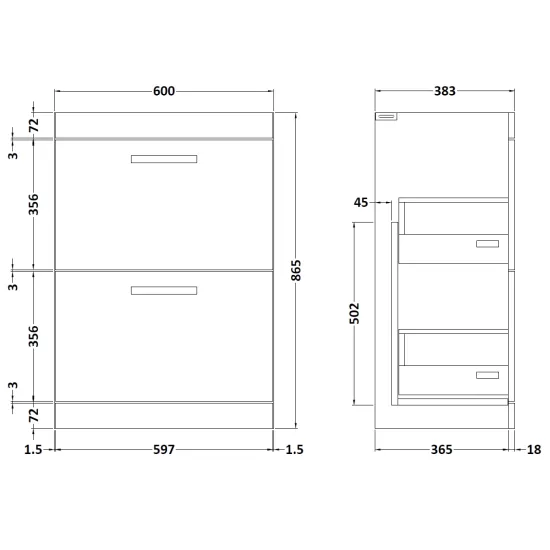 Athena Floor Standing 2 Drawer Vanity Unit 600mm
