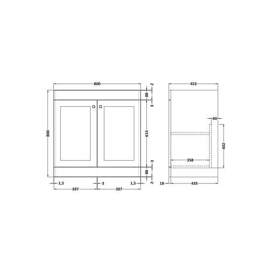 Classique Components Floor Standing 2 Door Unit, 800mm - Satin Green