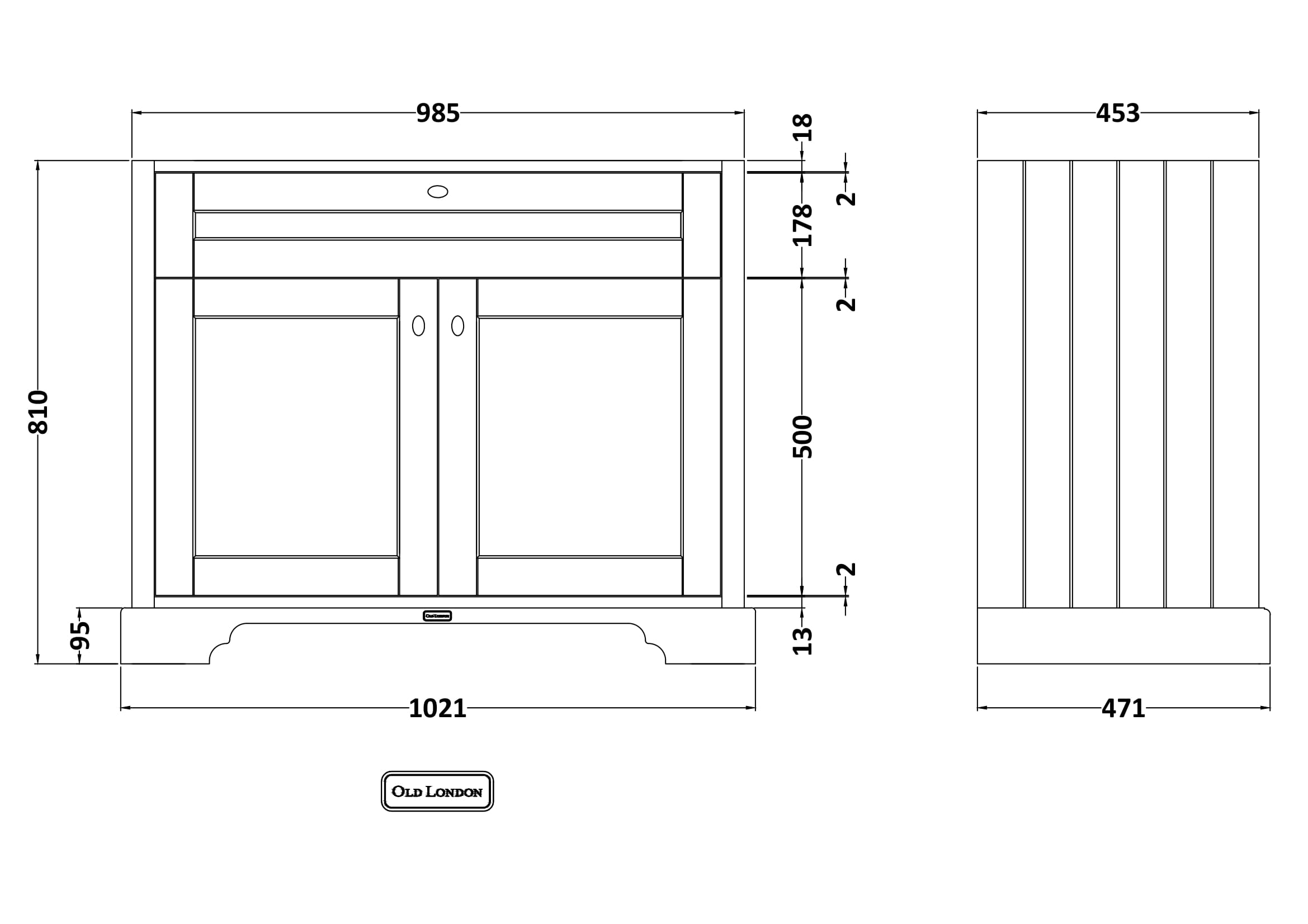 Old London Floor Standing 2 Door Basin Unit 1000mm - Timeless Sand