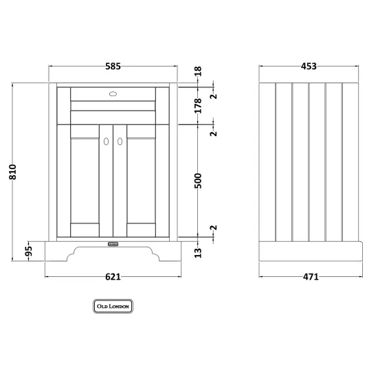Old London Floor Standing 2 Door Basin Unit 600mm - Timeless Sand