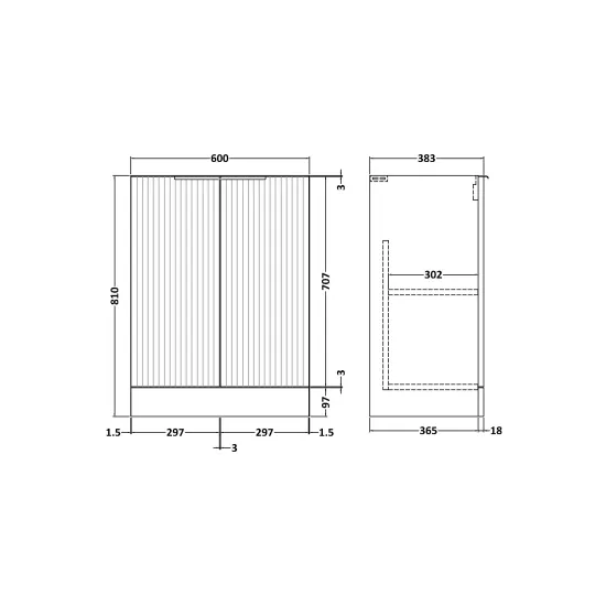 Hudson Reed Fluted 600mm Floor Standing 2-Door Unit - Satin Grey