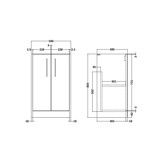 Hudson Reed Juno 500mm Floor Standing 2-Door Unit - Graphite Grey