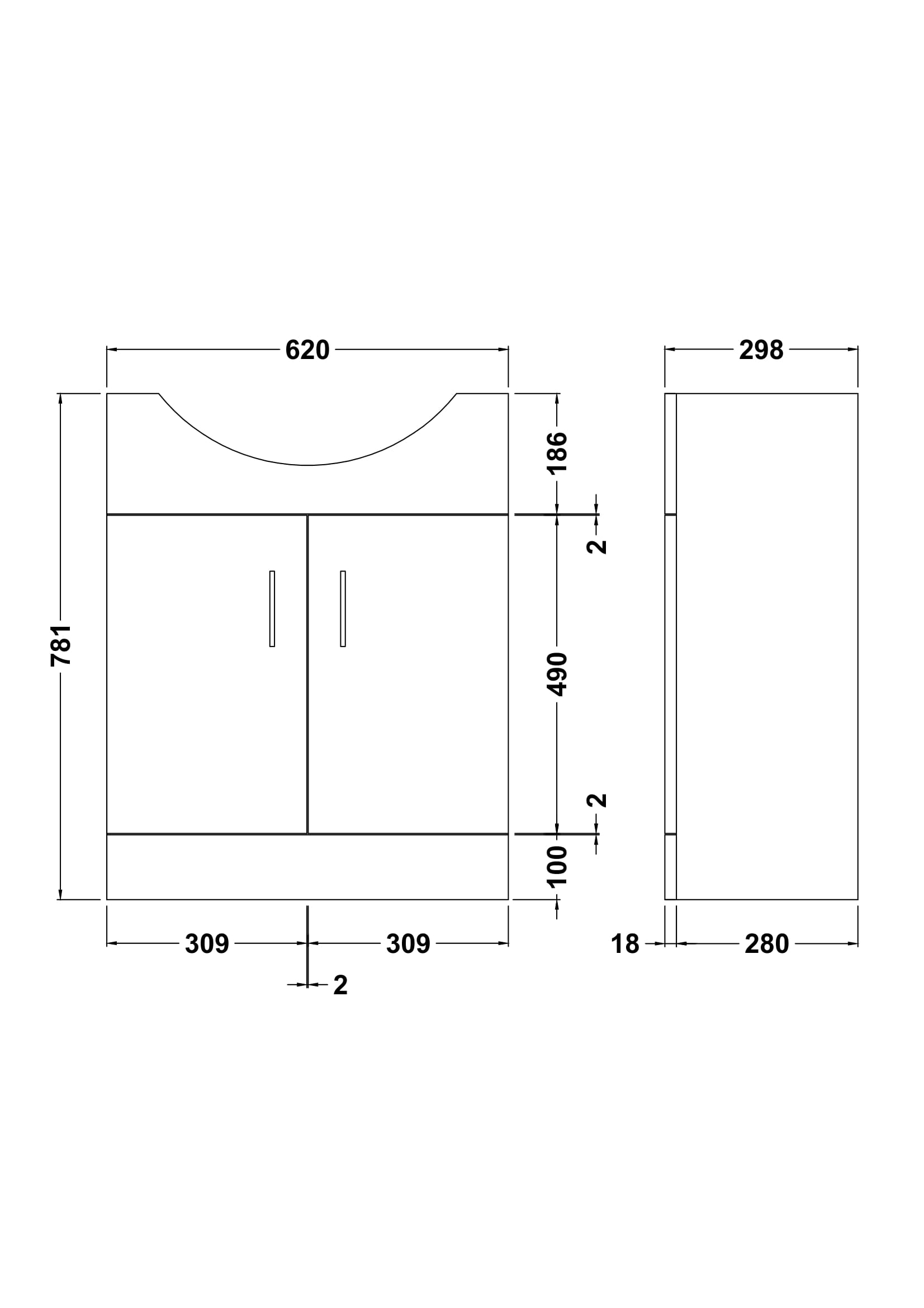 Mayford Floor Standing 2 Door Vanity Unit 650mm