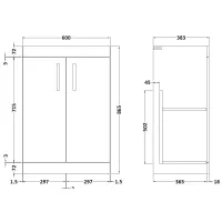 Athena Floor Standing 2 Door Vanity Unit 600mm