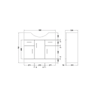 Mayford Floor Standing 3 Door 2 Drawer Vanity Unit 850mm
