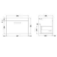 Athena Wall Hung 1 Drawer Vanity Unit 600mm