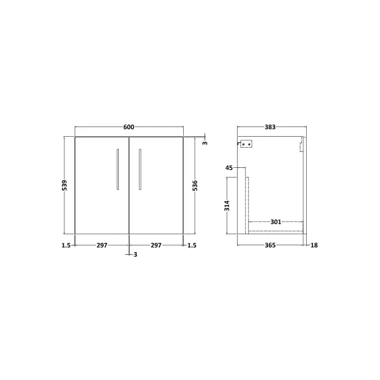 nuie Arno 600mm Wall Hung 2-Door Unit - Gloss White