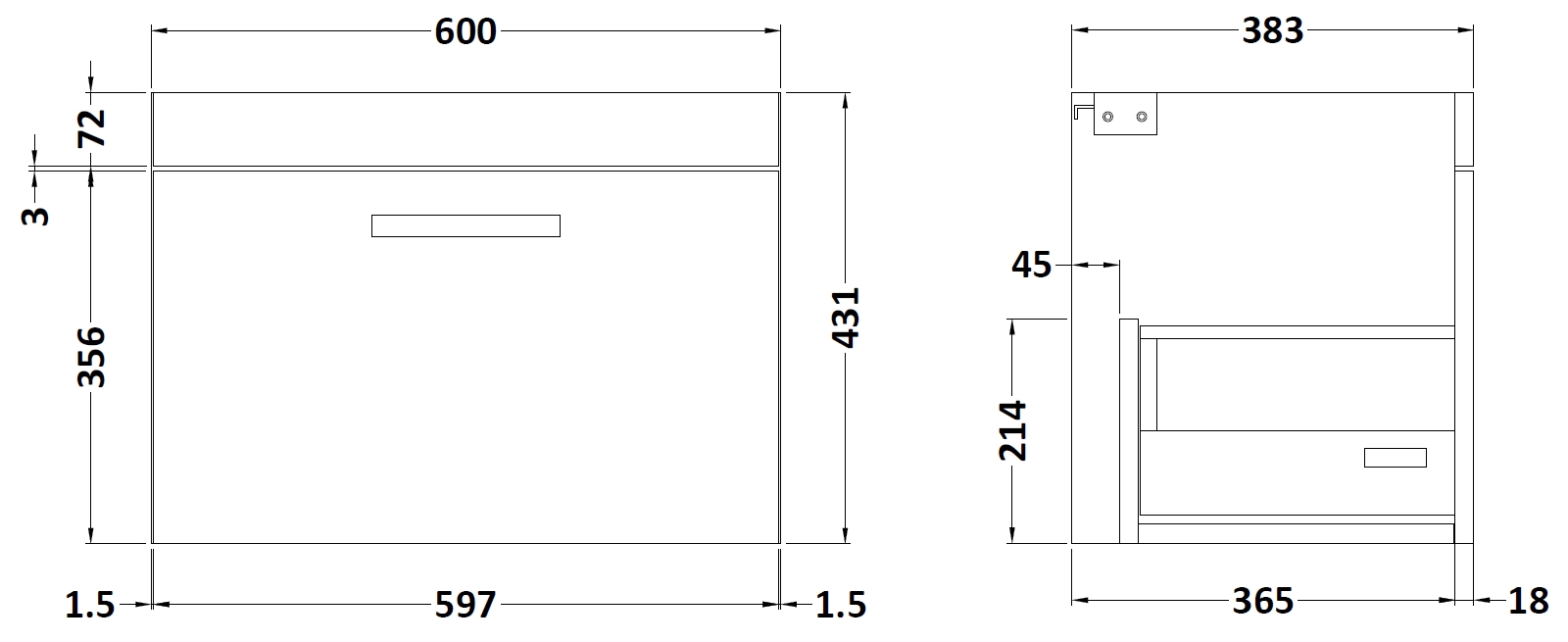 Athena Wall Hung 1 Drawer Vanity Unit 600mm