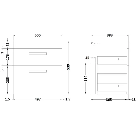 Athena Wall Hung 2 Drawer Vanity Unit 500mm