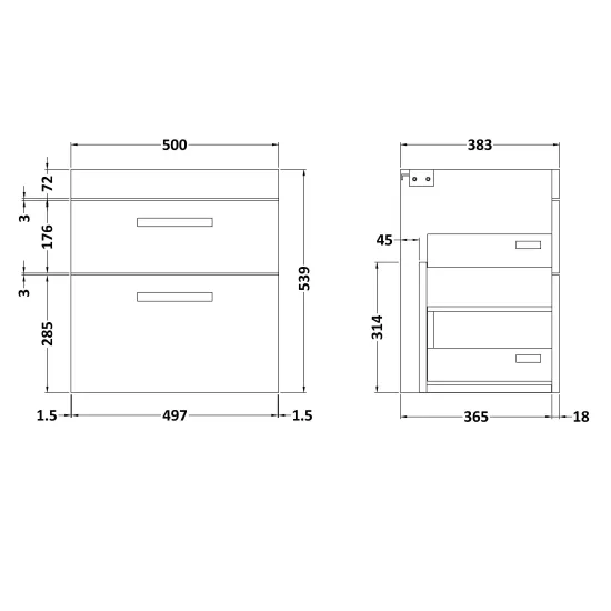 Athena Wall Hung 2 Drawer Vanity Unit 500mm