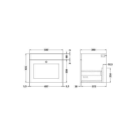 Components Wall Hung 1 Drawer Unit, 500mm