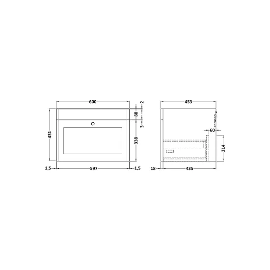 Classique Components Wall Hung 1 Drawer Unit, 600mm - Satin Anthracite