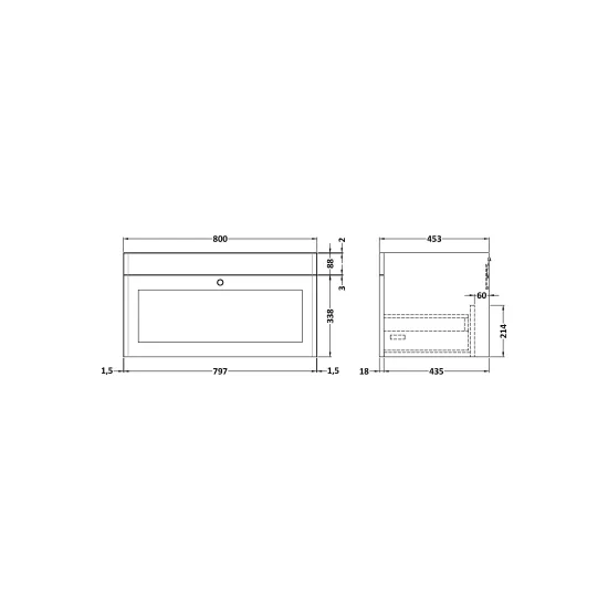 Classique Components Wall Hung 1 Drawer Unit, 800mm - Satin Grey