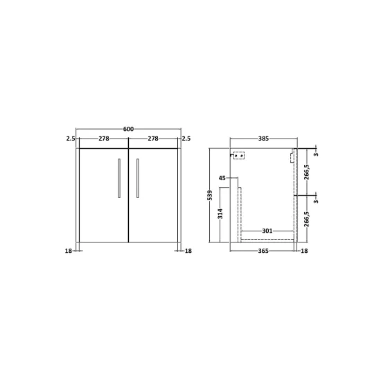 Components Wall Hung 2 Door Unit (385mm Deep), 600mm