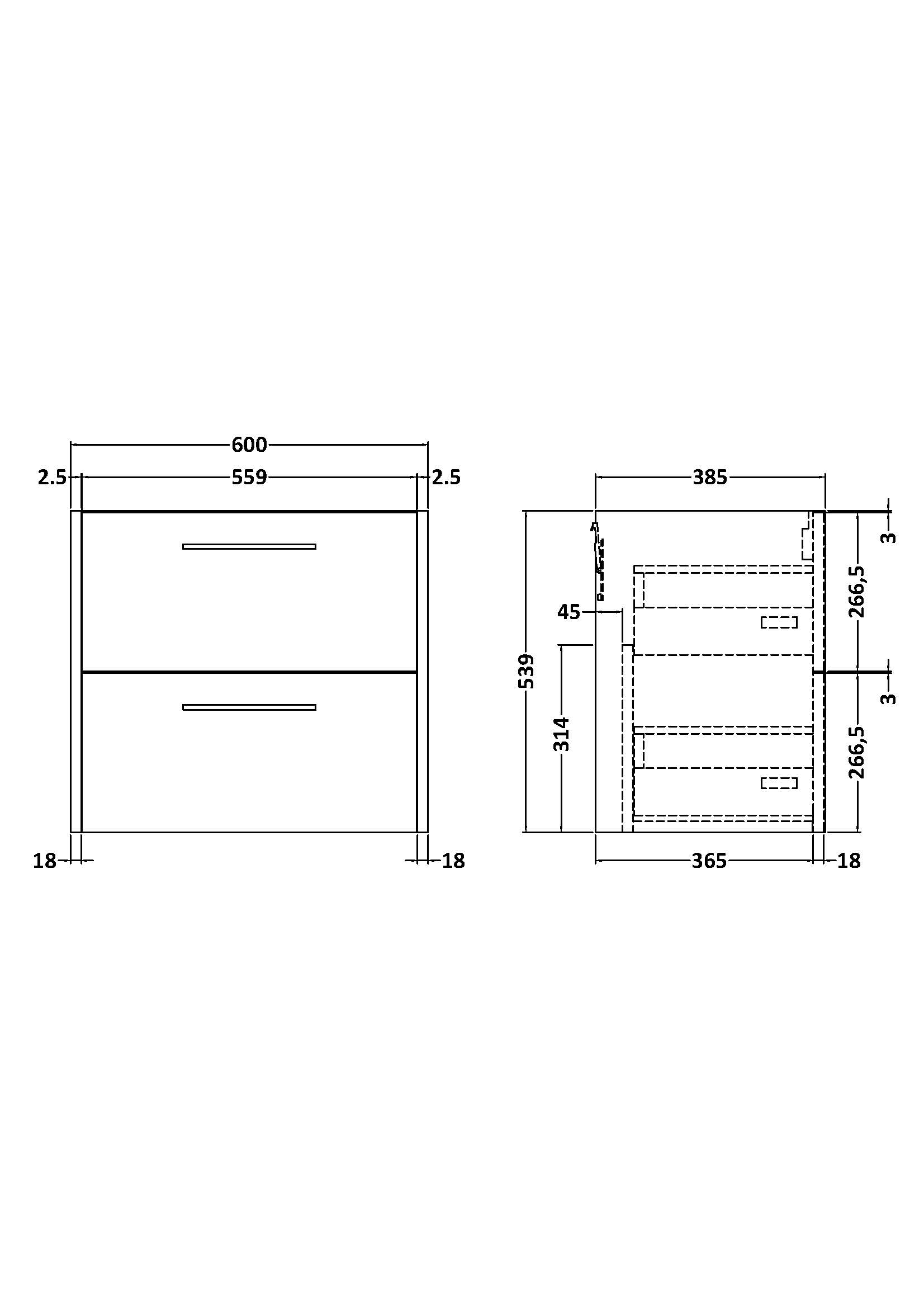 Components Wall Hung 2 Drawer Unit (385mm Deep), 600mm