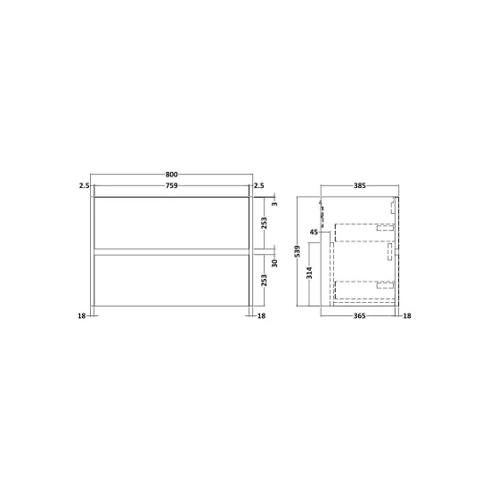 Components Wall Hung 2 Drawer Unit, 800mm