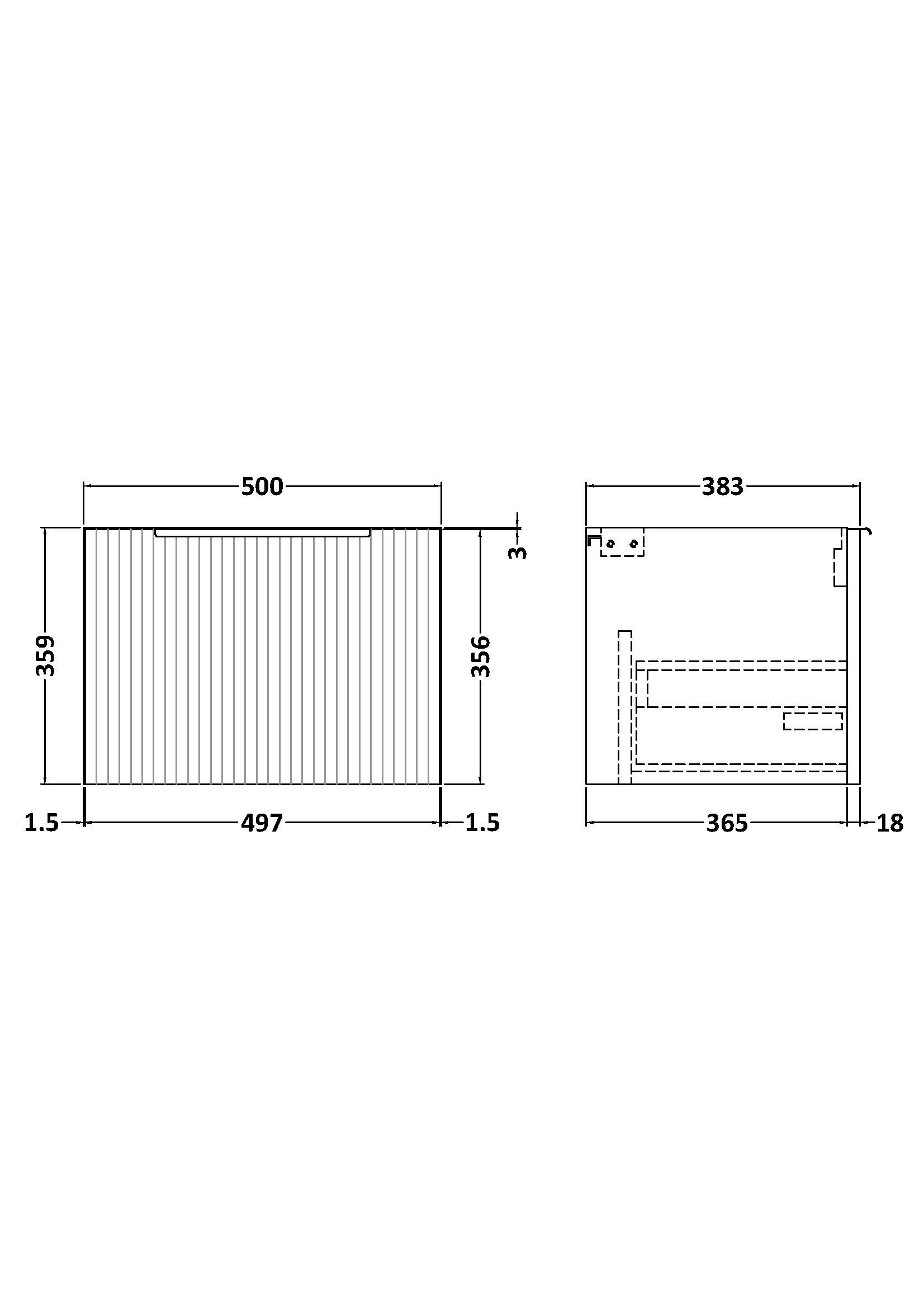 Hudson Reed Fluted 500mm Wall Hung Single Drawer Unit - Satin Grey