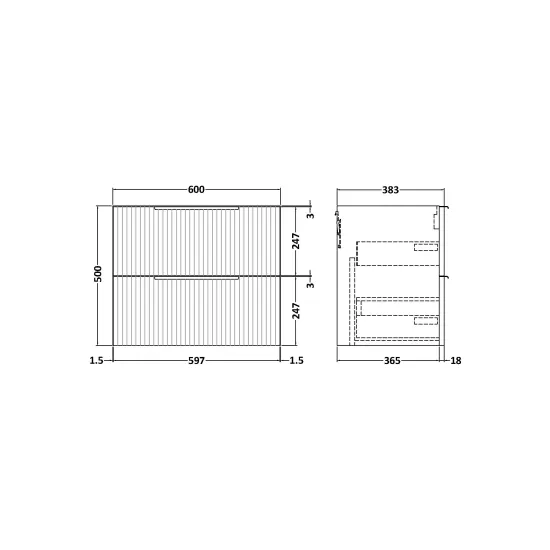 Fluted 600mm Wall Hung 2-Drawer Unit