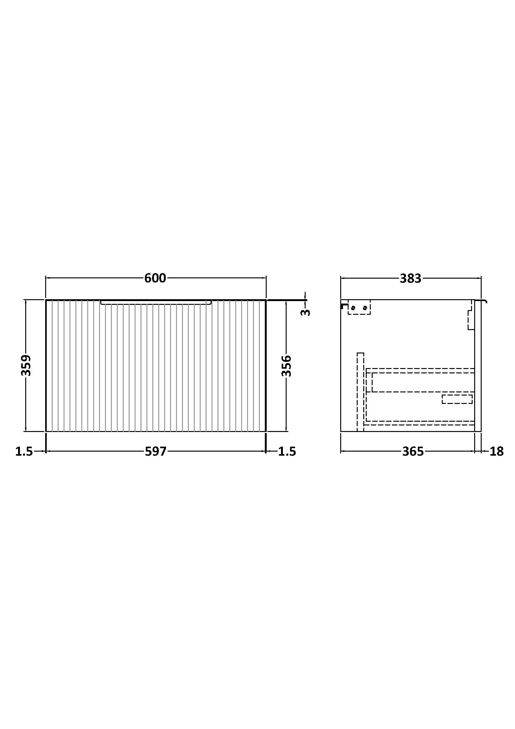 Hudson Reed Fluted 600mm Wall Hung Single Drawer Unit - Satin White