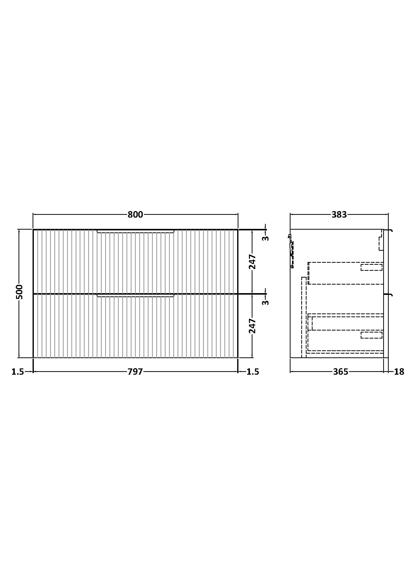 Fluted 800mm Wall Hung 2-Drawer Unit