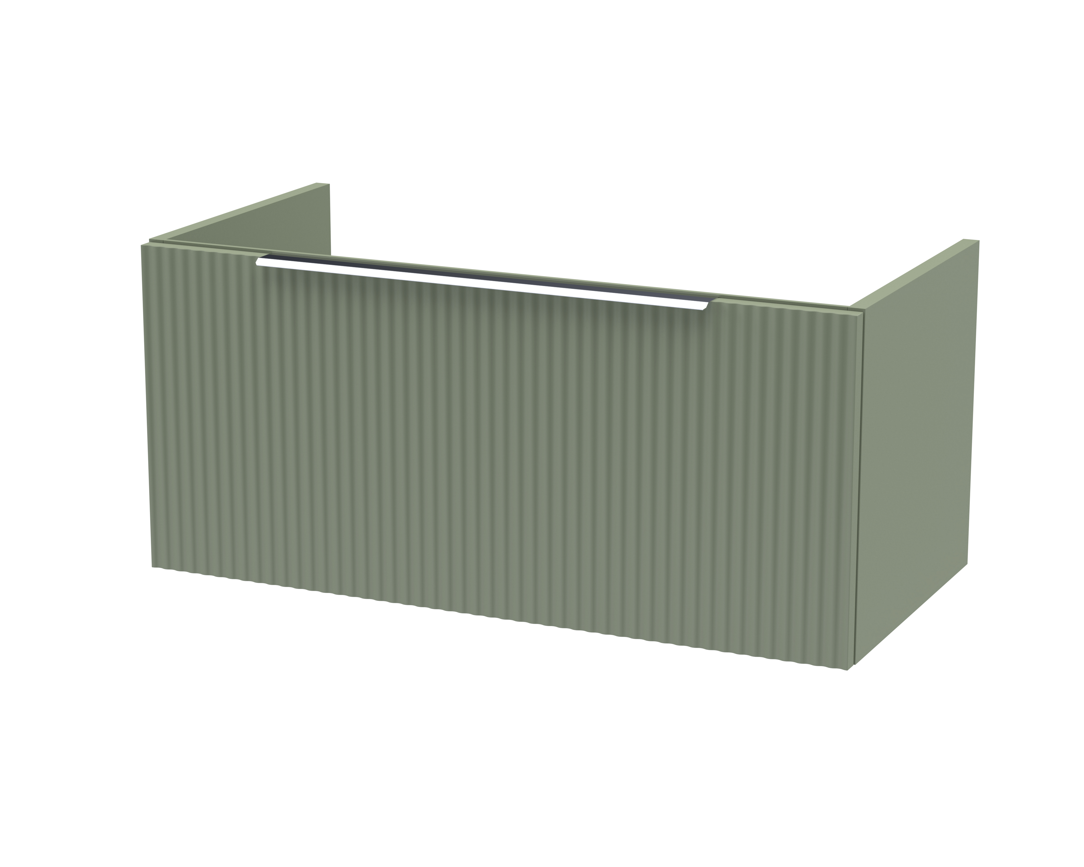 Hudson Reed Fluted 800mm Wall Hung Single Drawer Unit - Satin Green