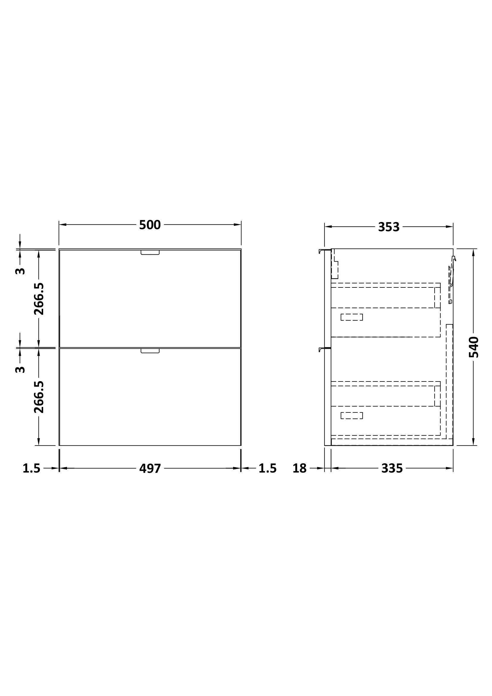 Fusion Wall Hung 2 Drawer Vanity Unit 500mm