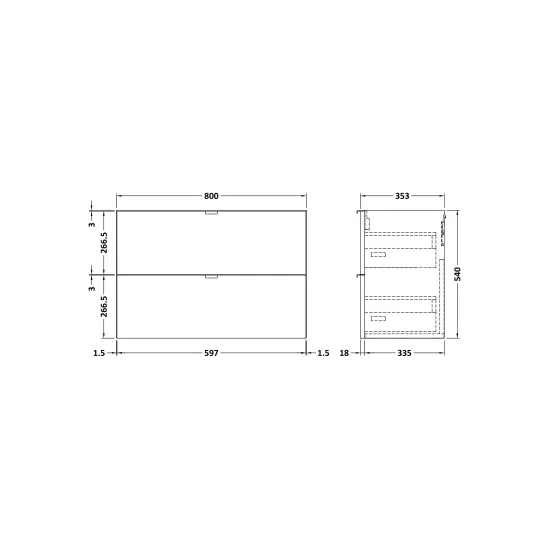 Fusion Wall Hung 2 Drawer Vanity Unit 800mm