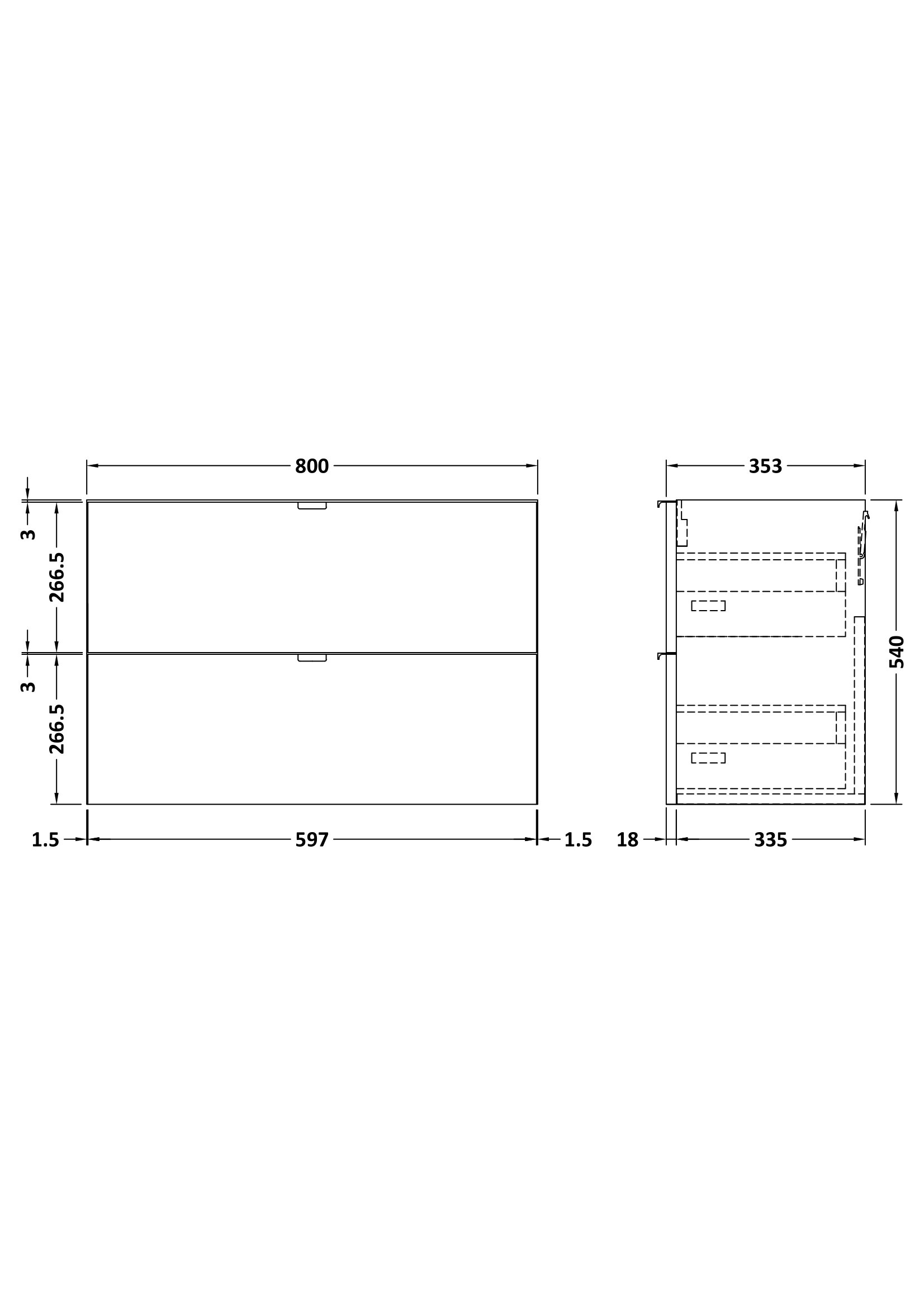 Fusion Wall Hung 2 Drawer Vanity Unit 800mm