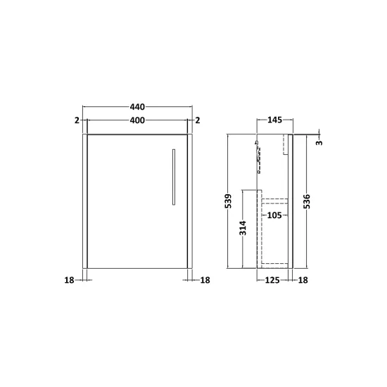 Juno Compact 440mm Wall Hung Single Door Unit
