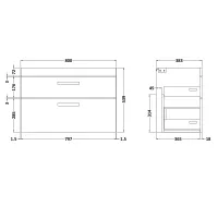 Fusion Wall Hung 2 Drawer Vanity Unit 800mm