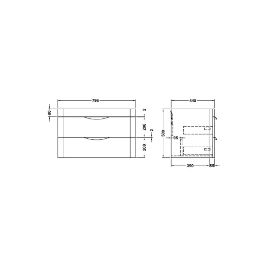 Parade Wall Hung 2 Drawer Basin Unit 800mm