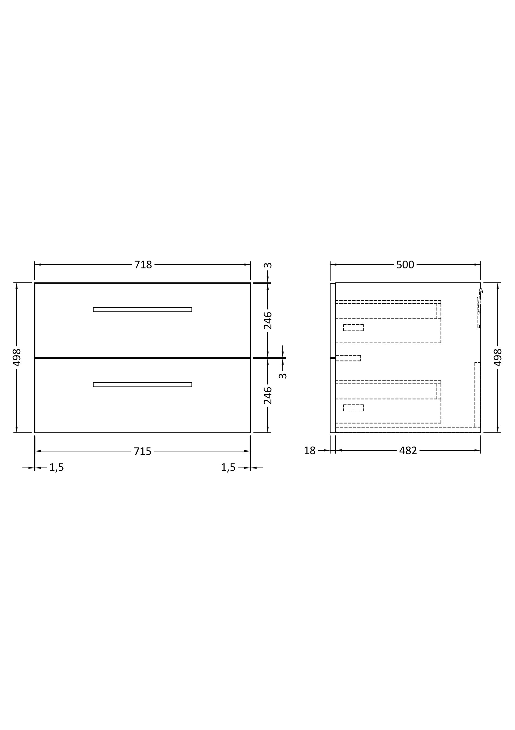 Quartet Wall Hung 2 Drawer Vanity Unit 718mm